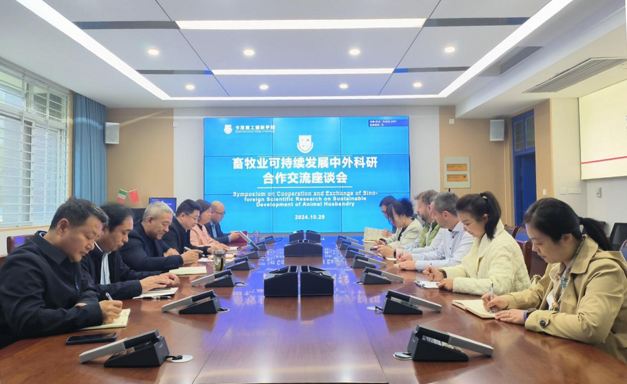 10月29日上午,我校“畜牧业可持续发展”中外科研合作交流座谈会在龙子湖校区尚严楼A120会议室召开。来自爱尔兰东南理工大学专家,Edmund Joyce教授,Oggy Zurovec博士,学校科学技术处、卡洛理工国际学院、动物科技学院、经济与贸易学院负责同志及教师代表参会。会议由科学技术处副处长史岳鹏主持。