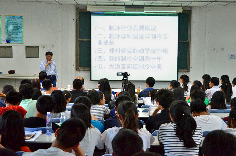 5月19日下午,郑州轻工业学院原副校长、享受国务院政府特殊津贴专家、河南省制冷学会理事长龚毅教授,应邀在北林校区A100作了一场题为“制冷行业发展、制冷学科建设、制冷专业成长”的专题学术报告。报告会由能源与动力工程学院院长隋继学教授主持,全院师生聆听了报告。
