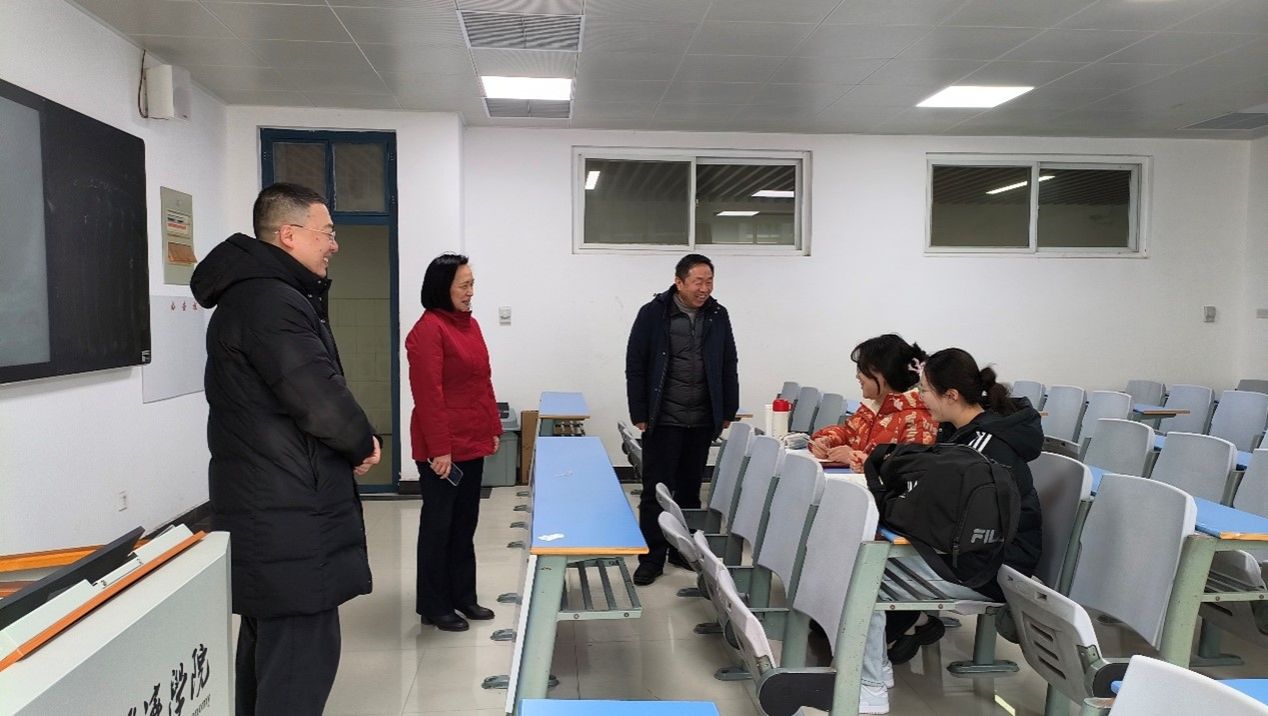新学期开学前夕,为全面保障教学秩序平稳运行,营造良好的育人环境,2月23日上午,校长尹新明、副校长边传周、教务处长宋予震等深入校园一线,走访教材发放点、教学场所、学生宿舍等地,实地检查开学准备工作,并与返校学生亲切交流,表达新学期的关怀与期望。