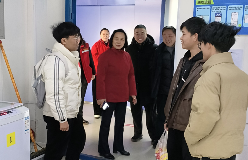在走访过程中,尹新明多次驻足与学生互动。教室内,她与提前返校自习的学生亲切交谈,询问学习计划与生活需求,“新学期要有新目标,人生要有大目标。既要脚踏实地,也要勇于突破。”尹新明用自己的学习经历,勉励学生珍惜时光、勤学笃行;宿舍楼内,与宿管人员细致沟通后勤服务细节,并走进学生宿舍,关切询问住宿条件与生活适应情况;校园中,校领导与返校学生并肩而行,倾听学生的寒假见闻和对校园活动的建议。一名学生由衷地说:“校领导像长辈一样关心我们的校园日常,既温暖又鼓舞!”校领导亲切关怀,学生真诚回应,展现出尊师重道的良好校园风貌。