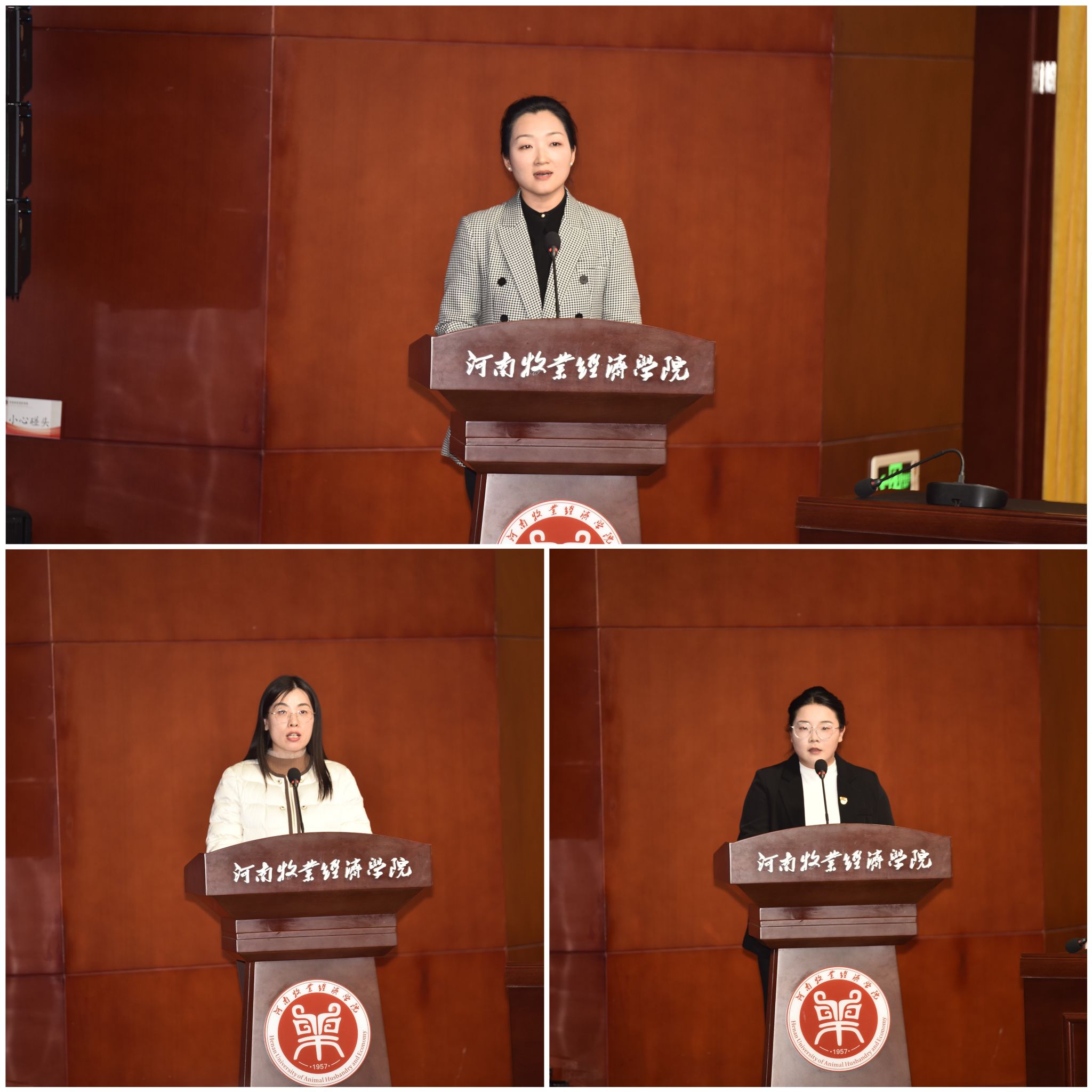 大学生心理健康教育中心主任张颖,金融与会计学院财务管理教研室主任苗霞、动物科技学院团委书记吴姣,分别代表先进集体与先进个人发言。(刘芳/文 吕元贞/图)