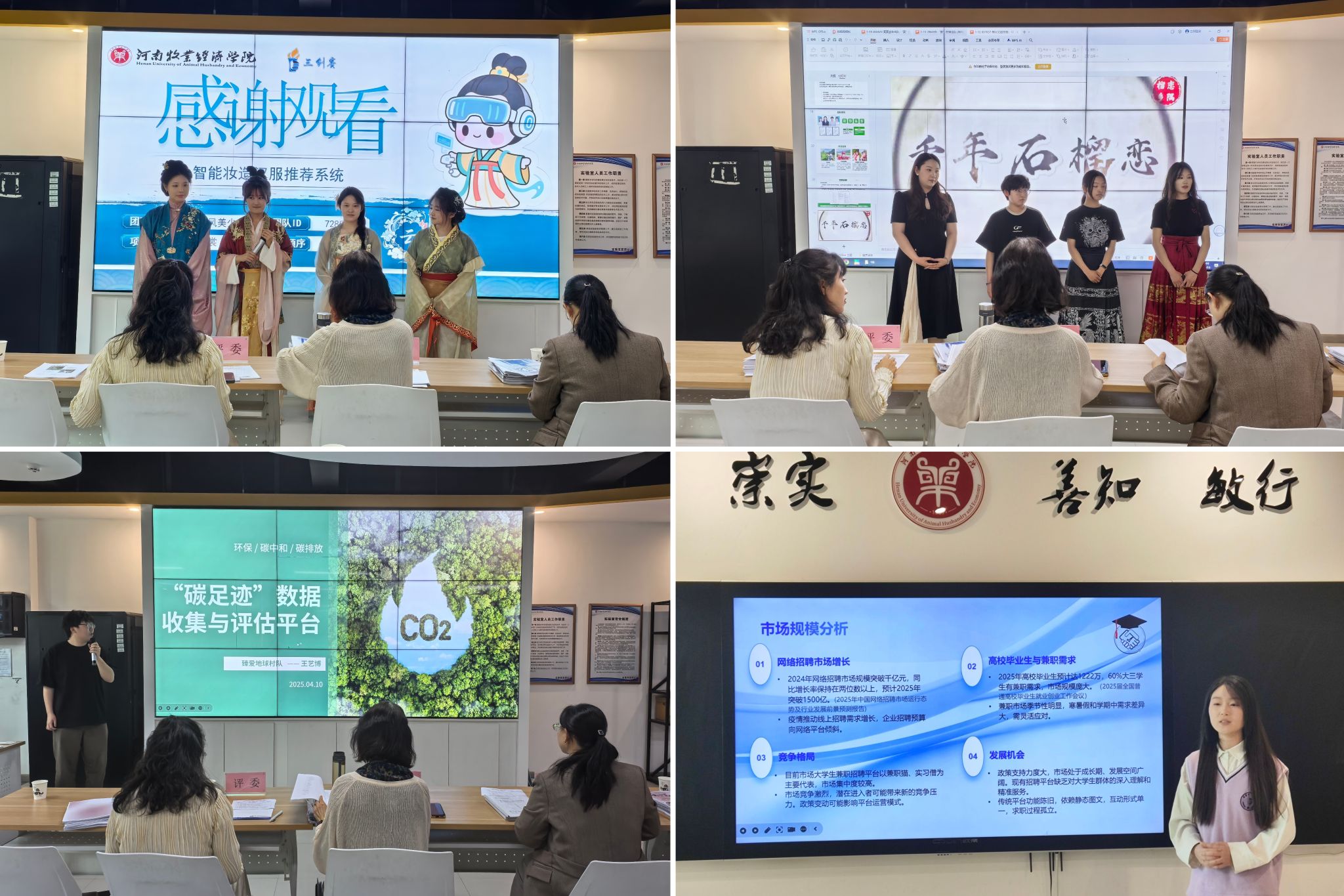 自校赛启动以来,10余个学院的700余名学生踊跃投身其中,组建了近150支参赛团队,在赛场上展现青春风采与创新活力。大赛邀请到郑州沣味食品科技有限公司、河南诸葛亮食品有限公司等企业的电商负责人及物流与电商学院、大学生就业创业指导服务中心等单位负责老师担任校赛评审。