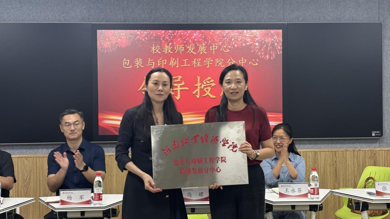 近日,我校首个教师发展分中心——包装与印刷工程学院分中心成立暨授牌仪式在龙子湖校区2号教学楼A218顺利举行。副校长马珺出席授牌仪式,教师发展中心、包装与印刷工程学院相关负责人及全体教师参加仪式。仪式由包装与印刷工程学院院长张岩主持。