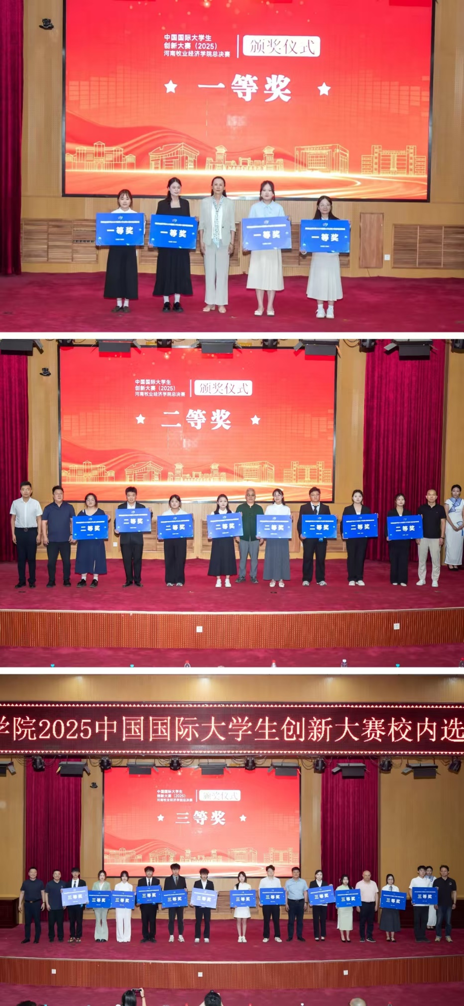 经过激烈角逐,“黄淮羊香-‘四位一体’家庭生态牧场点亮乡村振兴”等4个项目团队荣获一等奖,“益生肽-解锁护肝新密码”等8个项目团队荣获二等奖,“电循新程-健全新能源汽车动力电池回收利用体系”等12个项目团队荣获三等奖。与会领导嘉宾和专家评委现场为获奖项目团队代表颁奖。