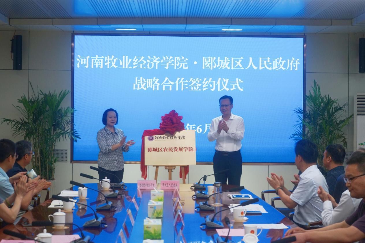 为深化校地合作,赋能乡村振兴,6月19日上午,我校与郾城区人民政府举行战略合作签约仪式。校长尹新明,副校长马珺,漯河市委副秘书长孟新建,郾城区委书记李占宾,区委常委、组织部部长杜继伟,副区长段鹏飞、李铸涛等领导出席活动。