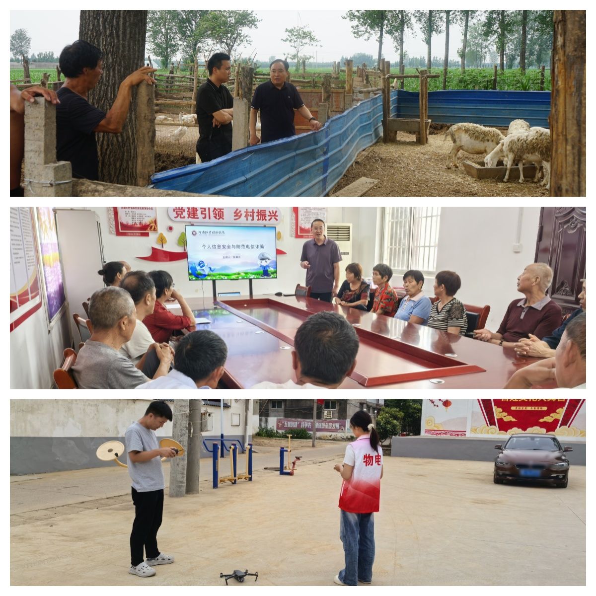 动物科技学院牛晖等专家深入村庄养殖大户,开展畜牧养殖业务调研指导,针对养殖过程中遇到的技术难题进行现场解答,提供科学的养殖建议,推动当地畜牧养殖业高质量发展。信息化办公室张淋江向郭栗庄村村民普及防电诈知识,提高防范意识和能力。物流电商学院师生团队,开展村庄航拍电商平台运营相关业务培训,为农产品拓宽销售渠道,助力乡村产业发展。