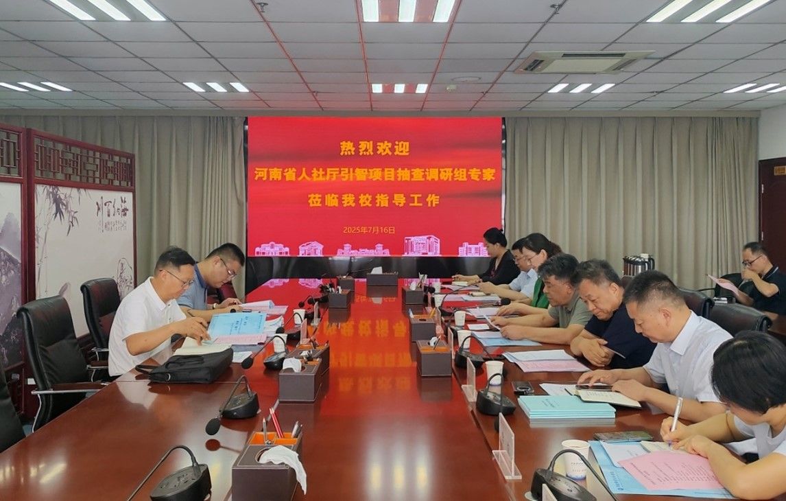 7月16日上午,河南省人力资源和社会保障厅外国专家服务处副处长孙顺华、财务专家张文冠一行,到我校开展引智项目执行情况专项抽查调研。我校副校长杨国宇,河南省杰出外籍科学家工作室负责人、副校长席磊出席会议。会议由科学技术处处长潘春梅主持。