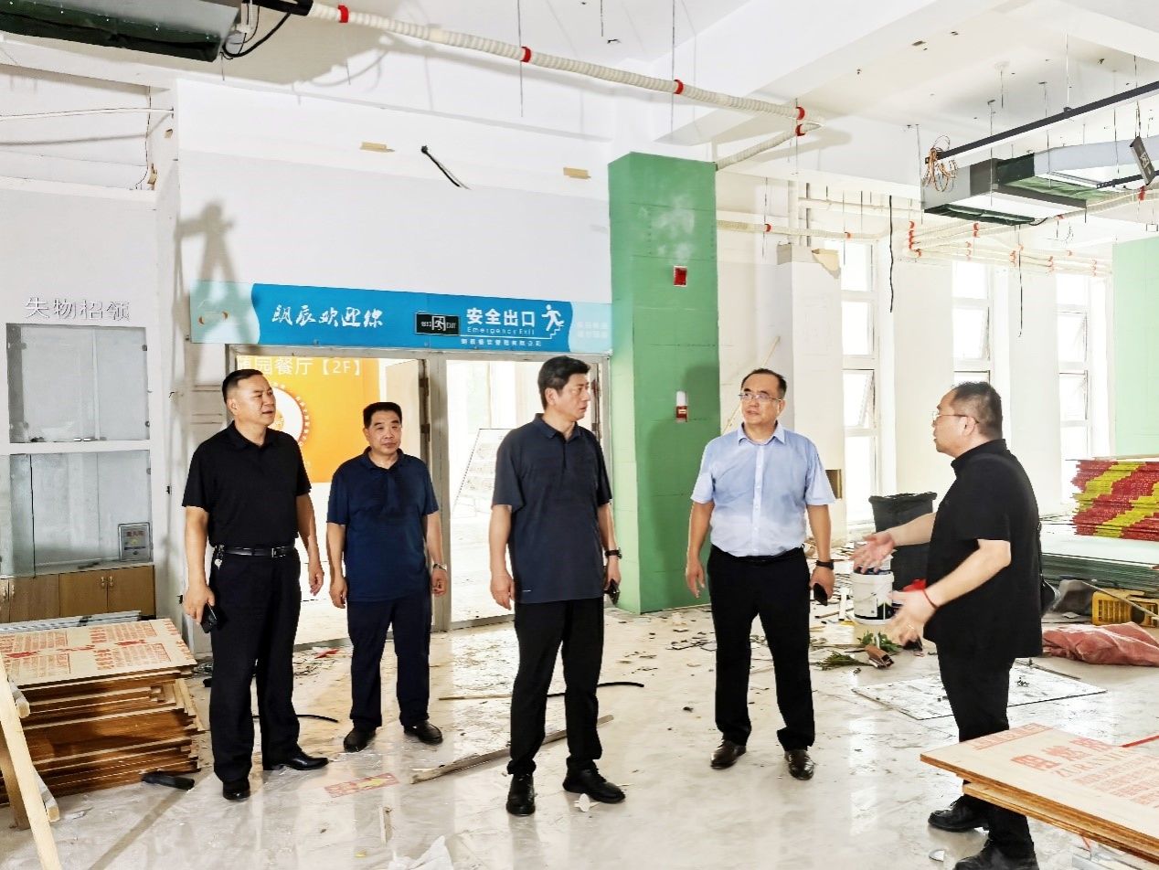 岳彩军一行实地查看了三校区餐厅、龙子湖校区卡洛理工国际学院学生公寓、英才校区多项维修改造工程、北林校区家属区电梯加装及三校区宿舍门禁系统更换等暑期重点维修改造项目现场,并重点检查防汛准备工作。