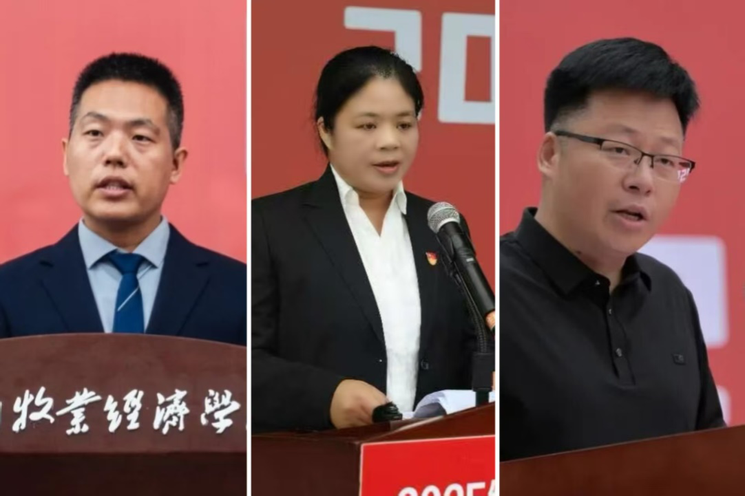 能源与智能工程学院院长王硕(左)、物流与电商学院副院长李艳菊(中)、动物科技学院教授权凯(右)作为教师代表发言