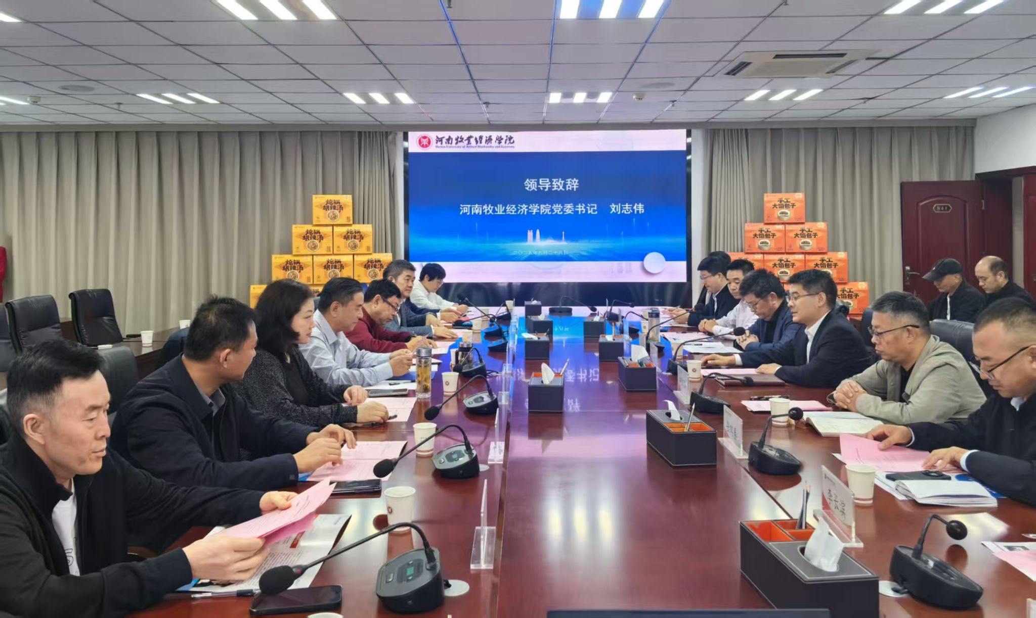 社会服务办公室、河南牧经海润资产经营有限公司、食品与生物工程学院(酒业学院)相关负责人参会。(刘俊彦/文 聂丹/图)