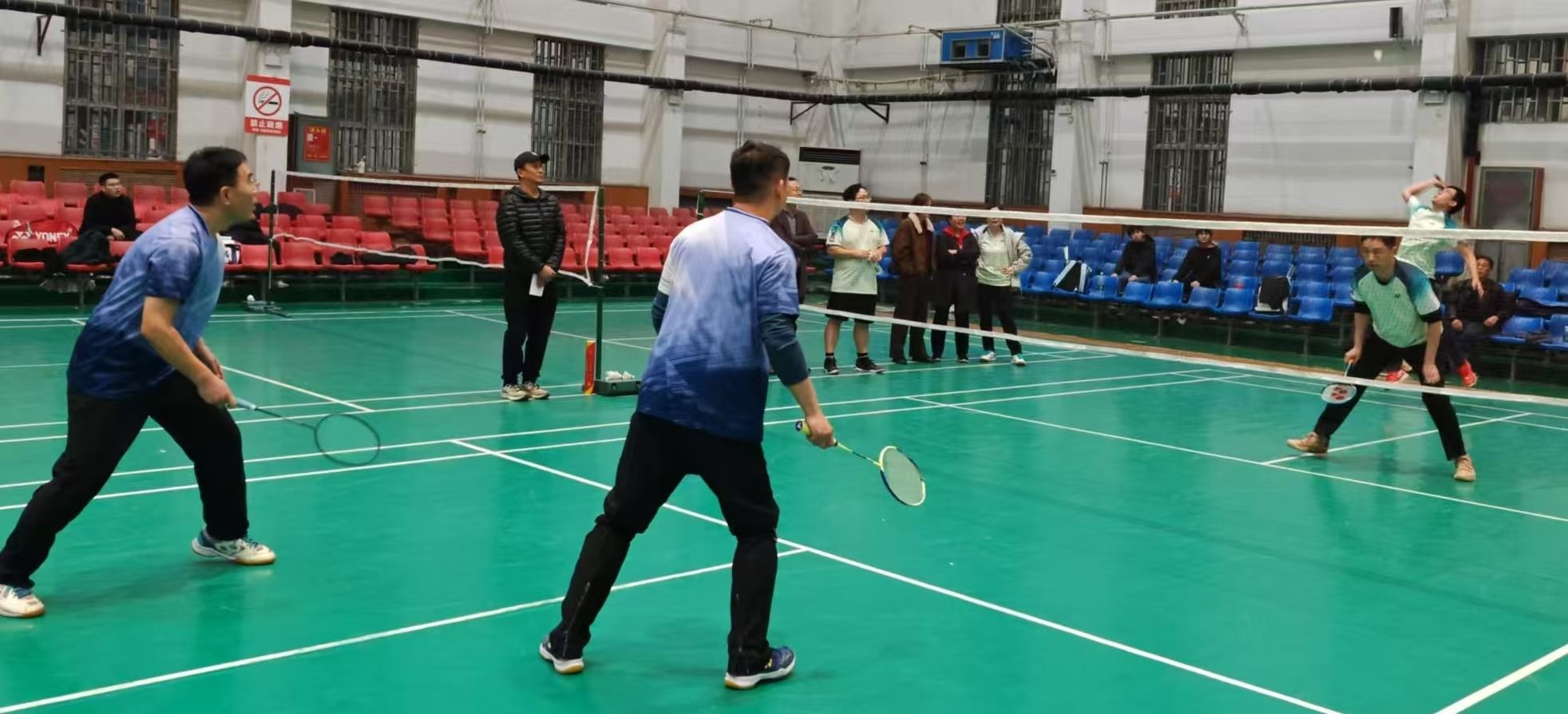 本届羽毛球团体比赛集健身性、娱乐性、观赏性于一体。赛场上,双打搭档默契配合,跳跃、挥拍、扑救,每一个动作都凝聚团队力量;队员和啦啦队的呐喊、鼓劲、相拥,见证了大家的并肩荣光。比赛充分体现了“全员参与、健康同行”的理念,展现了我校教职工的强健体魄和良好风貌,增进了教职工间的交流,更增强了团结拼搏、积极向上的团队凝聚力和集体荣誉感。