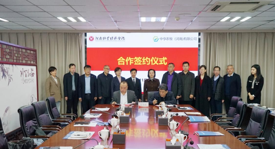 11月10日,学校与中亨农牧(河南)有限公司校企合作暨横向项目签约仪式在龙子湖校区图书馆841会议室举行。河南省农业农村厅二级巡视员陈仁辉、畜牧处副处长张小玲、产业处副处长兰文,镇平县副县长黄玉、农业农村局局长王中振、副局长曾冉,我校校长尹新明、副校长杨国宇,中亨农牧(河南)有限公司董事长常金鹏等出席签约仪式。科学技术处处长潘春梅主持仪式。