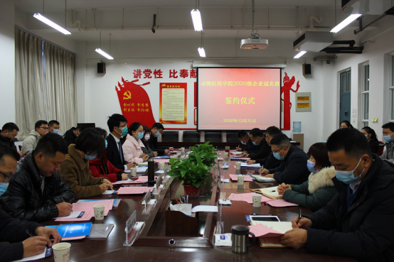 2020年12月31日上午,我校动物医药学院于生工楼C-401会议室举行2020级企业冠名班签约仪式。校长罗士喜出席签约仪式,动物医药学院领导班子和江西正邦科技股份有限公司等15家企业负责人参加仪式。签约仪式由动物医药学院副院长吴玉臣主持。