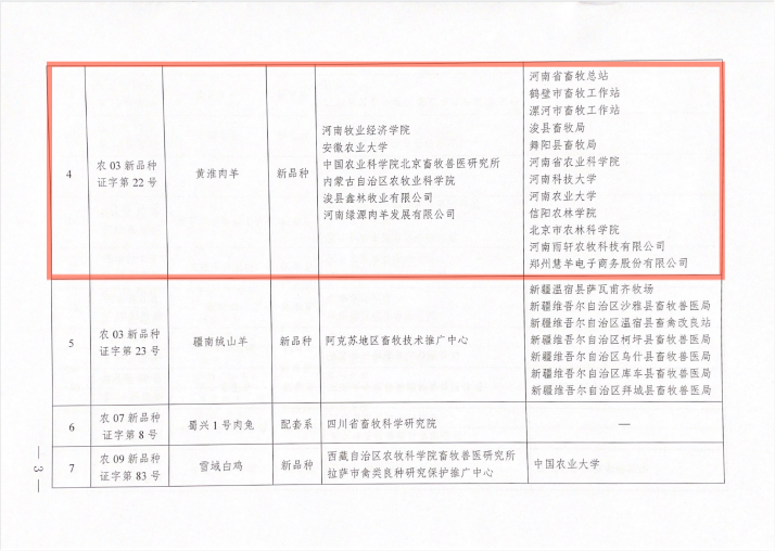 2020年12月31日,中华人民共和国农业农村部发布公告,我校动物科技学院权凯博士主持培育的“黄淮肉羊”新品种经国家畜禽遗传资源委员会审定、鉴定通过,并由国家畜禽遗传资源委员会颁发证书。