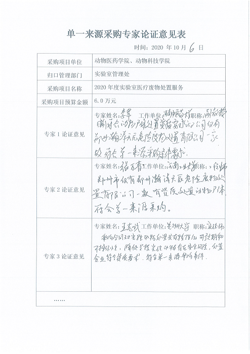 根据《中华人民共和国固体废物污染环境防治法》、《医疗废物管理条例》的有关规定及《高等学校实验室安全检查项目表》的相关要求,医疗废物需进行无害化处置。依据《国家危险废物名录》,我校实验室产生的医疗废物主要为HW01医疗废物中的900-001-01(实验动物尸体)。经在郑州市生态环境局网站查询,郑州地区具有《危险废物经营许可证》并且许可经营危险废物类别为HW01的企业仅有郑州瀚洋天辰危险废物处置有限公司(郑环许可危废字01号)一家,符合单一来源采购条件。