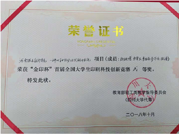 10月22日,教育部高等学校轻工类教学指导委员会(印刷工程专业组)会议暨首届“金印杯”全国大学生印刷科技创新决赛在北京印刷学院举行。经演讲、答辩及评审组评比,我校包装与印刷工程学院参赛作品《一种双轴自动钢印系统》荣获二等奖。