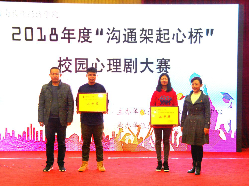 为提高学生心理自助与互助能力,进一步激发同学们对身边生活的热情,关注自我心灵的健康,11月7日晚,我校在英才校区学术报告厅举办“沟通架起心桥”校园心理剧大赛。本次大赛由大学生心理健康中心主办,物流与电商学院承办。校心理健康中心主任陈玉焕、物流与电商学院党总支书记宋之苓、校团委副书记李帅堂和相关专业老师出席了此次比赛并担任评委,来自各学院600余名学生观看了此次比赛。