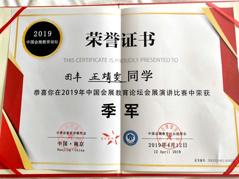 4月11至13日,“讯狐杯”全国会展院校大学生创意策划挑战赛,“讯狐杯”第五届全国会展院校“会展未来之星”演讲大赛在南京举行。本次活动由中国会展经济研究会主办,讯狐国际科技(北京)有限公司承办,国内多家省级会展行业协会协办,吸引了四川大学、湖南师范大学、南昌大学、成都理工大学等国内40多所知名高校参加。我校旅游学院田丰、王静雯两位同学在该赛事演讲赛中荣获季军,张云秀、郭玉芳两位同学在创意策划挑战赛中获二等奖,副院长赵忠奇、沙强博士同获优秀指导教师。