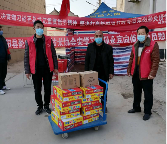 2018年青年农场主培训班结业学员宋学习,利用互联网技术为养殖场户提供技术服务,还为该县从庄村、邢庄村的疫情防控卡点送去了方便面、凉白开饮品。