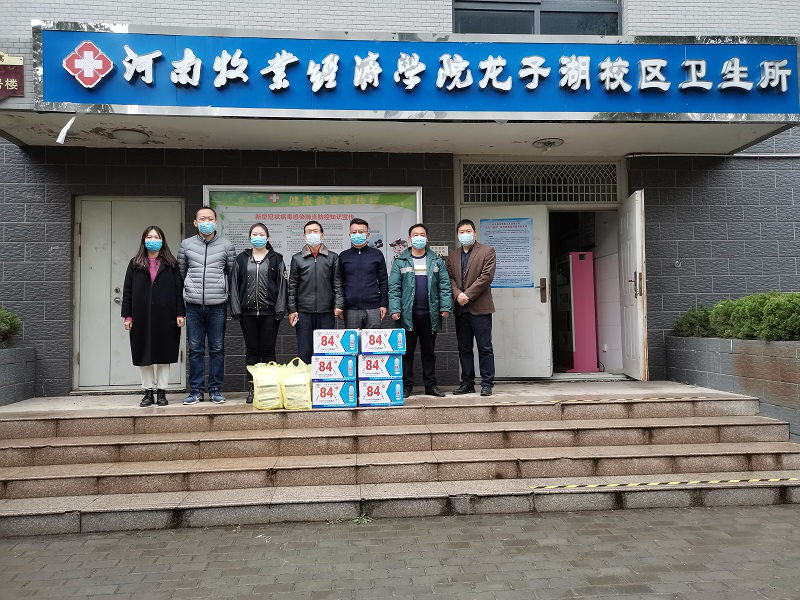 4月10日上午,动物医药学院2017级宠物养护01班学生杨笑莹向学校捐赠消毒液、口罩一批,动物医药学院党委书记刘永录、党委副书记汪洋、团总支书记王宏魁及辅导员樊明明协同校医院医生程占彪共同代表校医院接受了该批捐赠物资。