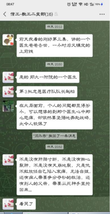 《雄关》的观看与学习,在该院师生中引起了热烈地反响,该院各党支部于16日、17日利用信息技术召开了线上学习研讨会。大家结合自身实际,或通过微信写心得,或通过视频会议谈感受。纷纷表示,该政论片展示了中国战“疫”的河南力量,激昂处热血沸腾,感人处催人泪下。通过交流,大家更深刻认识到了中国共产党领导和我国社会主义制度、国家治理体系强大生命力和显著优越性,更坚定了在平凡的工作岗位上用实际行动彰显责任与担当的勇气与信念。 (信息工程学院 李井竹/文 各党支部/图)