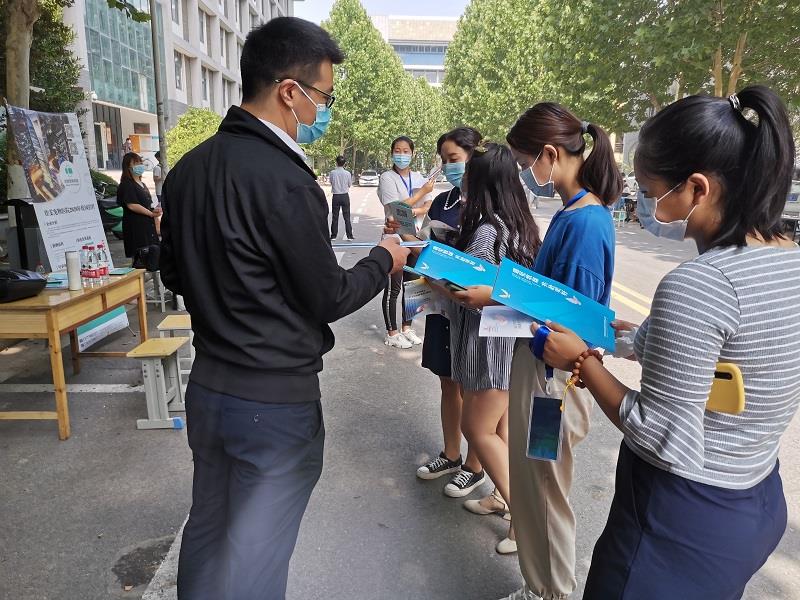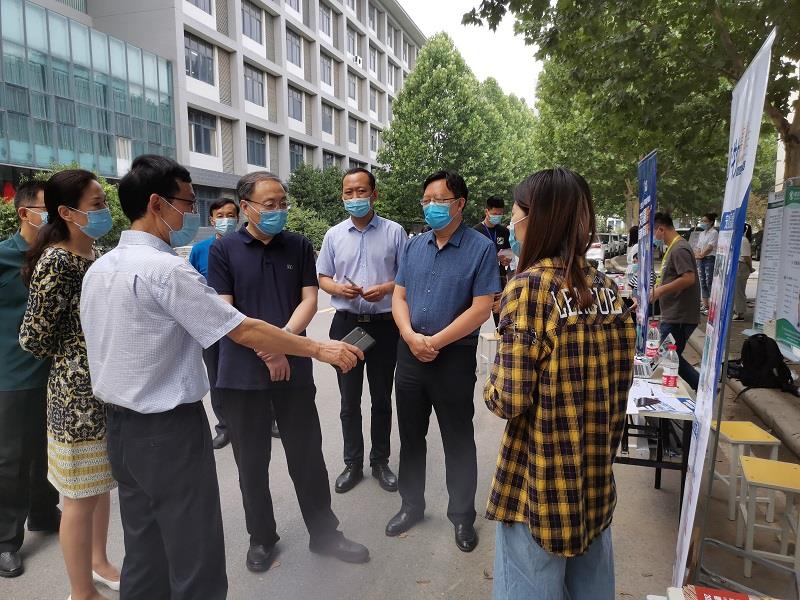 6月19日上午,动物医药学院2020届毕业生招聘会在龙子湖校区生工组团楼C座门口主干道上拉开帷幕。校党委书记穆瑞杰、党委副书记李俊杰、副校长张卫宪、杨志清来到招聘会现场指导工作。