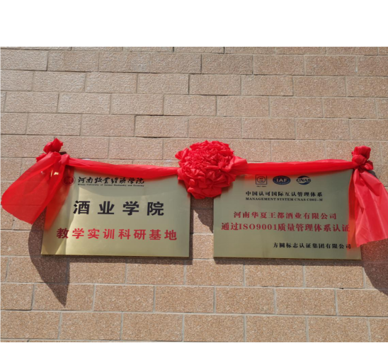 9月1日,食品与生物工程学院与河南华夏王都酒业有限公司在河南华夏王都酒业有限公司举行产学研合作基地签约暨揭牌仪式,食品与生物工程学院院长潘春梅、副院长郝振修,酿酒大师李学思、滑县副县长邵鸿斌、县工信局党组书记周淑军、新区管委会副主任周勋,河南华夏王都酒业有限公司董事长陈晓鹏、厂长冯海艇、营销公司总经理李新峰等出席仪式。